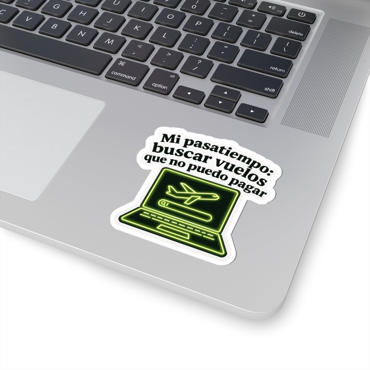 Una pegatina brillante troquelada que captura el humor agridulce de las ensoñaciones viajeras. El diseño muestra una laptop estilo neón con una barra de búsqueda y el ícono de un avión, coronada con la frase "Mi pasatiempo: buscar vuelos que no puedo pagar". Se siente como navegar en un avión nocturno: esperanzador, un poco melancólico y discretamente divertido. Pégala en una laptop, botella de agua o diario de viaje para compartir un guiño con otros viajeros con presupuesto ajustado y soñadores con pasión por los viajes. El acabado brillante realza los colores neón, mientras que el vinilo duradero y el adhesivo fuerte mantienen la pegatina impecable a pesar del uso diario.